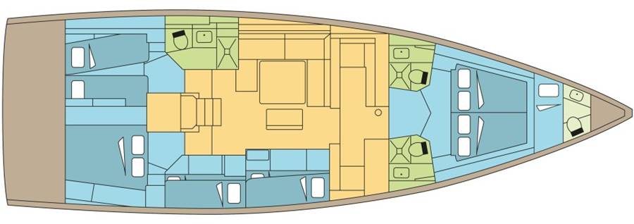 Crew-Kabinen | 3 Doppel-Kabinen, 2 Stockbett-Kabinen, 1 Staukabine für sperriges Gepäck / Koffer |